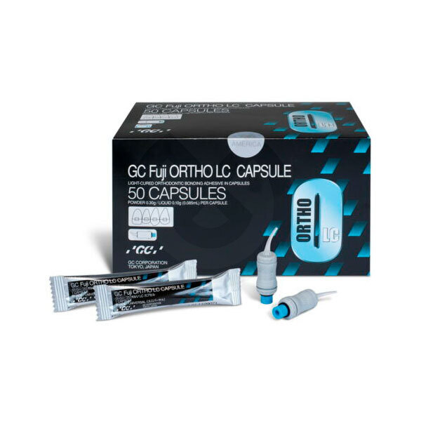 Cemento de Ionómero de Vidrio fotopolimerizable reforzado con resina. Indicado para la adhesión de brackets y bandas de ortodoncia. Fuji Ortho LC libera flúor protegiendo de descalcificaciones y caries. Fácil y rápido de aplicar incluso en campos húmedos, sin necesidad de secar el diente.
