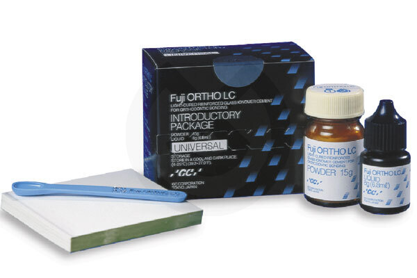 Cemento de Ionómero de Vidrio fotopolimerizable reforzado con resina. Indicado para la adhesión de brackets y bandas de ortodoncia. Fuji Ortho LC libera flúor protegiendo de descalcificaciones y caries. Fácil y rápido de aplicar incluso en campos húmedos, sin necesidad de secar el diente.
