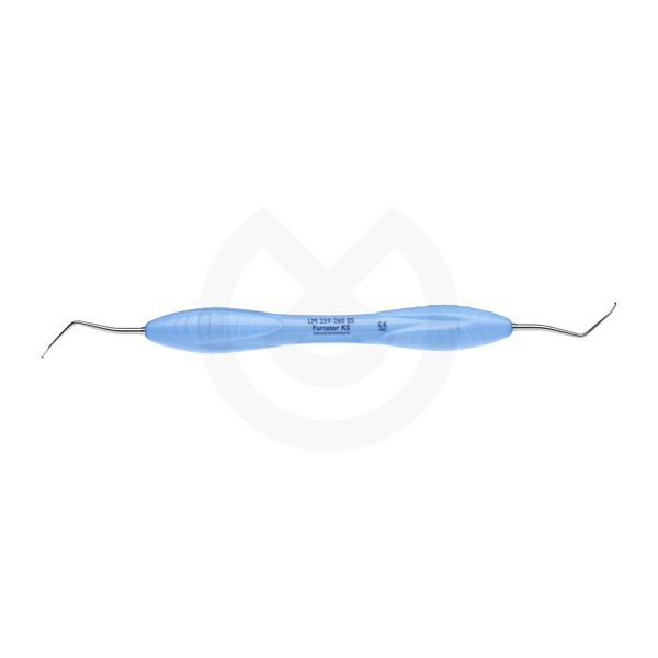 Instrumento adecuado para la limpieza de las furcas de los dientes multirradiculares.
