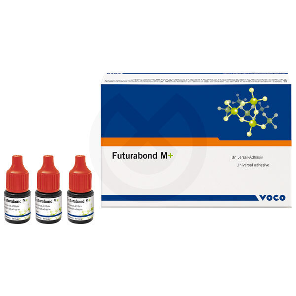 Solución flexible y eficaz para cada situación adhesiva. • Utilizable con o sin grabado de ácido fosfórico • Excelentemente apropiado para restauraciones directas e indirectas. • Adhesión segura a diversos materiales como metales, óxido de zirconio, óxido de aluminio así como cerámica de silicato sin ningún agente de preparación (Primer) adicional. • Se aplica en una capa - trabajo rápido en sólo 35 segundos En combinación con el Futurabond M+ DCA (Dual Cure Activator): Restauraciones directas e indirectas con todos los composites de autocurado o de curado dual a base de metacrilatos para obturación, reconstrucción de muñones y para fijación. Fijación de postes radiculares con composites de fijación de curado dual o de autocurado.