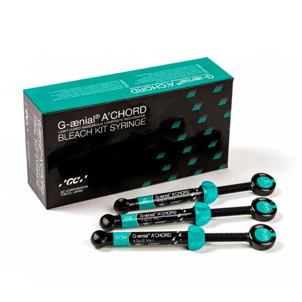 G-ænial® A'CHORD es un composite universal versátil para restauraciones en anterior y posterior, con un sistema de colores simplificado que logra la estética de los 16 colores clásicos Vita con sus 5 colores básicos (core).