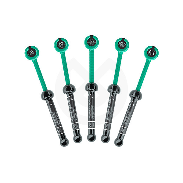 G-ænial® A'CHORD es un composite universal versátil para restauraciones en anterior y posterior, con un sistema de colores simplificado que logra la estética de los 16 colores clásicos Vita con sus 5 colores básicos (core).