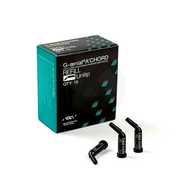 G-ænial® A'CHORD es un composite universal versátil para restauraciones en anterior y posterior, con un sistema de colores simplificado que logra la estética de los 16 colores clásicos Vita con sus 5 colores básicos (core).