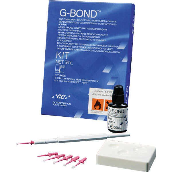 G-Bond en un nuevo y revolucionario sistema de adhesión de 7ª generación, una botella, una capa, con una sola aplicación está listo. - Una sola capa: fácil de usar, sin errores. - Procedimiento total: 30 segundos - el más rápido del mercado. - Adhesión química a la dentina y al esmalte - bonding seguro y fuerte. - Ácido suave: túbulos cerrados - sin sensibilidad post operatoria. - Superficie rugosa después de fraguar – fácil aplicación del composite. - No contiene Hema – obturación duradera. - 300 gotas por frasco – muy económico. - Botella rugosa que no trasmite el calor de la mano y cánula más larga y pequeña – Se evita la evaporación de componentes.