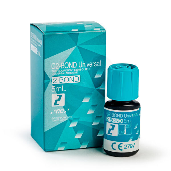 G2-BOND Universal es un adhesivo universal en dos componentes con tecnología Dual H, que permite la optimización avanzada de la unión tanto al diente como al composite mediante una transición suave de las características hidrófilas a las hidrófobas. La capa de adhesión hidrófoba, gracias a la composición libre de HEMA, reduce la ocurrencia de sorción de agua que disminuye el riesgo de degradación. Gracias a la tecnología Dual-H, el Primer garantiza la calidad de la adhesión y el Bond mejora la durabilidad de la capa de adhesión. Ofrece una calidad marginal excelente gracias a su fuerte capa de adhesión que evita la formación de gap y microfiltraciones que conduce a una notable eficacia de sellado sin prácticamente ninguna sensibilidad postoperatoria. Compuesto de monómero funcional libre de HEMA (4-MET, MDP, MDTP) para una adhesión duradera a diferentes sustratos. Dosificación controlada gracias a las fundas ergonómicas.