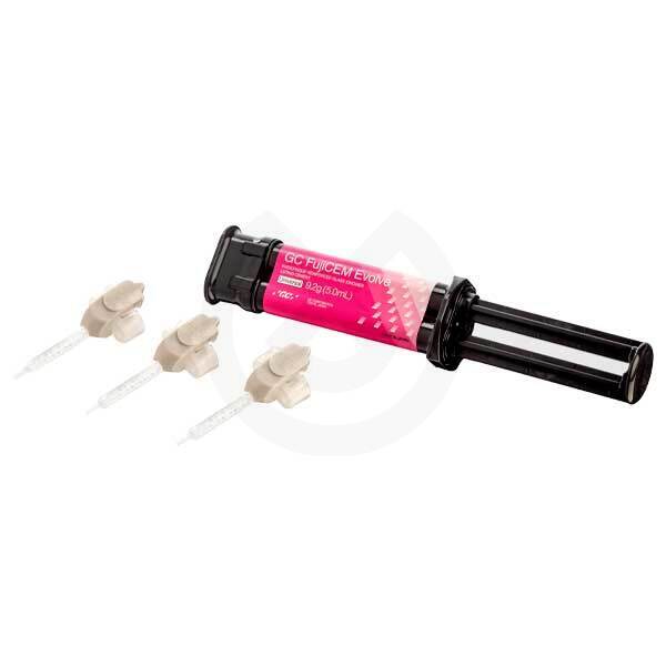 FujiCEM Evolve es un cemento de ionómero de vidrio modificado con resina que proporciona un rendimiento fiable y una agradable comodidad. Brinda facilidad de uso y rendimiento para trabajos protésicos estándar, desde restauraciones con base de metal retentivas hasta restauraciones de circonia. No es irritante ni presenta riesgo de sensibilidad postoperatoria. Mejora el rendimiento gracias a una excelente adherencia al diente y restauración, especialmente al zirconio. Disponible en color universal para adaptarse a todas las situaciones clínicas. Las puntas 'Push and Click' se pueden poner y quitar fácilmente con un solo toque.