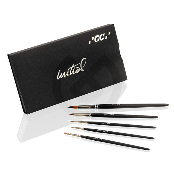 Variedad de tamaños: El modelo más común es el GC Initial Brush 00 LP y 02LP, adecuado para trabajos de maquillaje y detalles finos. Pincel para opáquer OP. Pincel para estratificar 06 M y 08 M