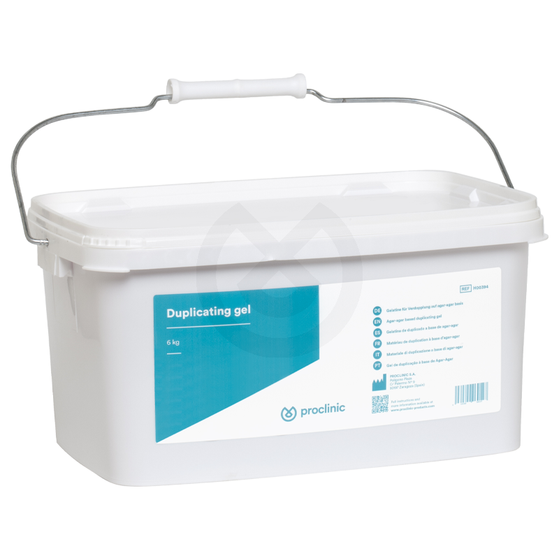 Gelatina de duplicado reutilizable y de alta dureza para la producción de dentaduras por la técnica de vertido. Para usar en microondas, gelatinadora o baño maría. Dureza óptima, alta precisión y definición.