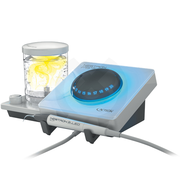 Dotado de una pieza de mano NEWTRON® SLIM B.LED esterilizable incluyendo un anillo de luz