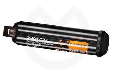 Composite para la reconstrucción estética de muñones y la cementación de postes. Gradia Core combina la cementación y reconstrucción de muñones en un solo producto con propiedades de manipulación ideales.