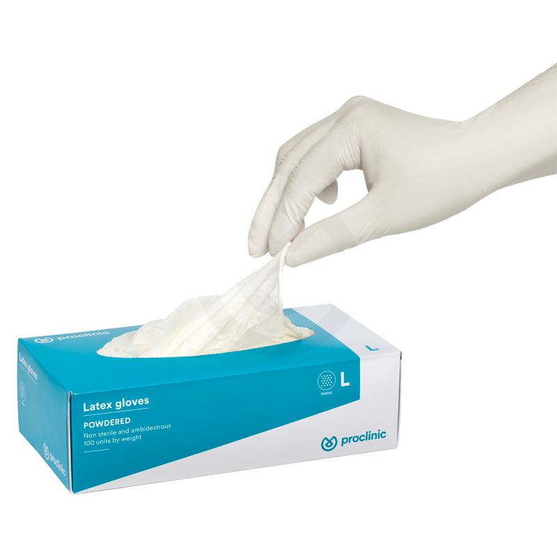 Guantes desechables de látex con polvo. Cumplen con las normativas ASTM D3578, EN 455-1-2-3-4.
