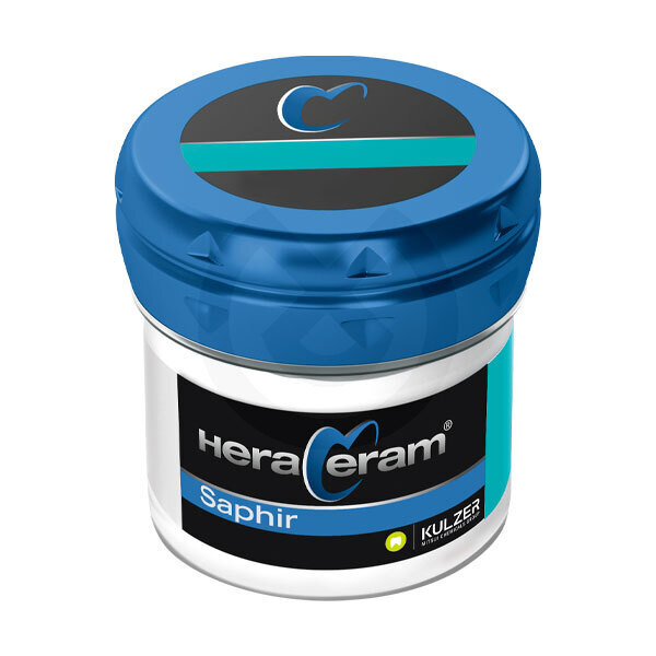 HeraCeram Saphir es la elección perfecta para el recubrimiento de aleaciones de metales preciosos y no preciosos con un rango CTE de 13,5 - 14,9 μm/mK. HeraCeram Saphir ofrece nuevas posibilidades gracias a la tecnología Light Booster, que permite una opalescencia excepcional y mayor translucidez. Además, el nuevo opaquer en pasta consigue un enmascaramiento sobresaliente incluso en capas extremadamente finas.