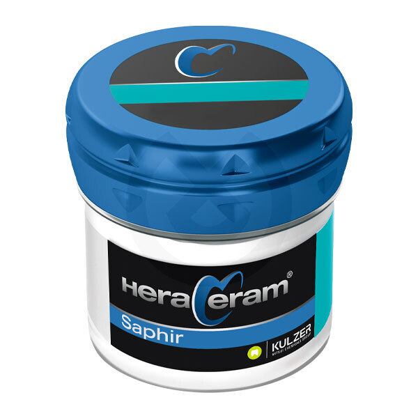 HeraCeram Saphir es la elección perfecta para el recubrimiento de aleaciones de metales preciosos y no preciosos con un rango CTE de 13,5 - 14,9 μm/mK. HeraCeram Saphir ofrece nuevas posibilidades gracias a la tecnología Light Booster, que permite una opalescencia excepcional y mayor translucidez. Además, el nuevo opaquer en pasta consigue un enmascaramiento sobresaliente incluso en capas extremadamente finas.