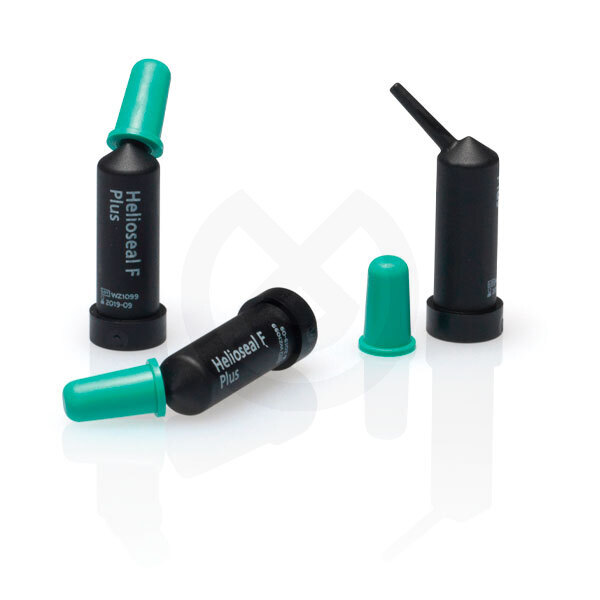 Helioseal F Plus es un sellador de fisuras fotopolimerizable, en color blanco y con liberación de flúor. Helioseal F Plus tiene óptimas propiedades de fluidez y es fácil de distribuir en superficies intrincadas, incluso en el maxilar superior. El sellado marginal hermético que se produce brinda protección contra las bacterias cariogénicas. Indicado para el sellado de fisuras, fosas y diminutas cavidades. Consistencia optimizada, tiempo de exposición reducido y excelente retención. Tratamiento cómodo y rápido para niños.