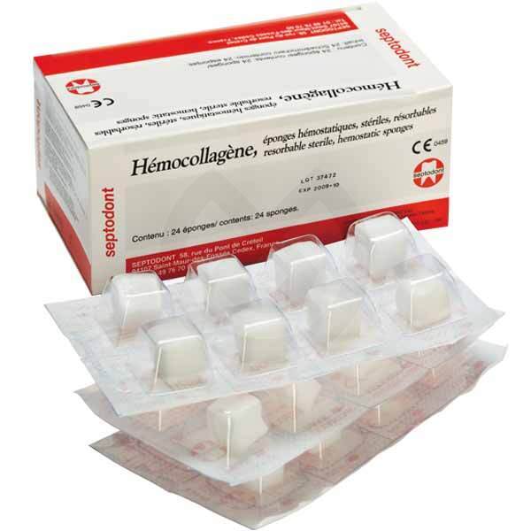Esponjas hemostáticas con colágeno de origen bovino no desnaturalizado y liofilizado. Completamente reabsorbibles para contribuir a la regeneración natural de los tejidos. Esterilizadas con radiación beta. Presentadas individualmente en 3 blister de 8 unidades. Tamaño: 15x15x8mm. Aplicación en seco sin humedecer la esponja.