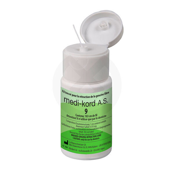 Hilo de algodón trenzado, impregnado con una solución de sulfato de aluminio (0.335 mg/cm ∙ 16 H2O) y secado mediante una técnica que preserva la actividad de la sustancia activa. La humedad del tejido sano reactiva la sustancia activa, que retrae al instante el tejido gingival sin dañarlo y exponiendo completamente el borde gingival.