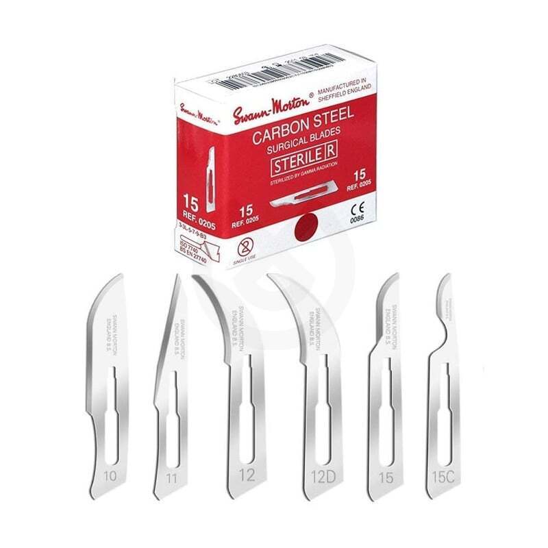 Los números de bisturí 10, 11, 12, 12D, 15, 15C y 15S son compatibles con mangos del nº3.