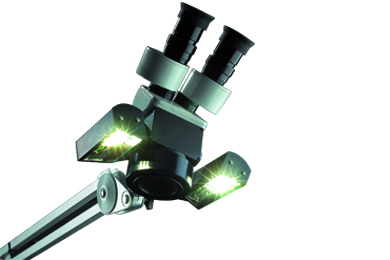 Iluminación LED de 9.000 lux para una óptima iluminación del campo visual y un máximo control de detalles. Se puede fijar en cualquier Mobiloskop Renfert.