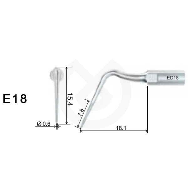 Punta ultrasonidos ED18. Tratamiento del conducto radicular, para eliminar la dentina y la calcificación a 1/3 del conducto radicular.
