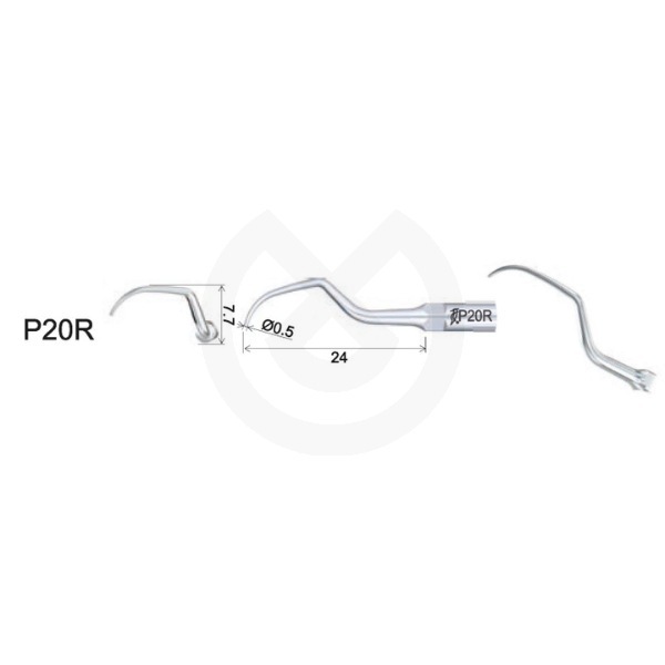 Curvatura hacia la derecha para una eliminación altamente eficaz del sarro en la zona subgingival posterior.