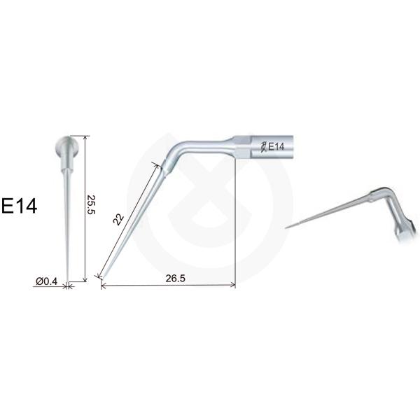 Instrumento para la eliminación de limas rotas dentro del conducto radicular. La longitud de la parte delgada de la punta es (22mm). Si es posible, coloque la cabeza del paciente en una posición en la que el conducto radicular esté horizontal con una inclinación hacia abajo. Gire la punta del instrumento en sentido contrario a las agujas del reloj alrededor de la parte rota hasta que sea extraída del conducto radicular. Para evitar que la lima rota se introduzca más profundamente en el conducto radicular, no ejerza presión sobre el instrumento en dirección axial.
