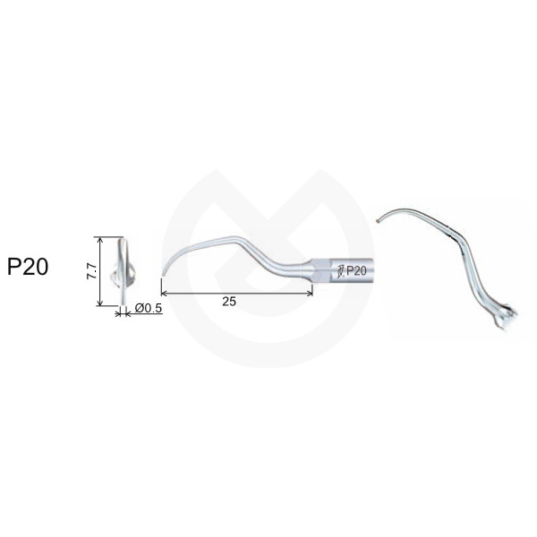 Especialmente diseñada para la eliminación de cálculo en los dientes adyacentes, margen gingival del cuello y el cálculo en los primeros 3mm de la bolsa subgingival.