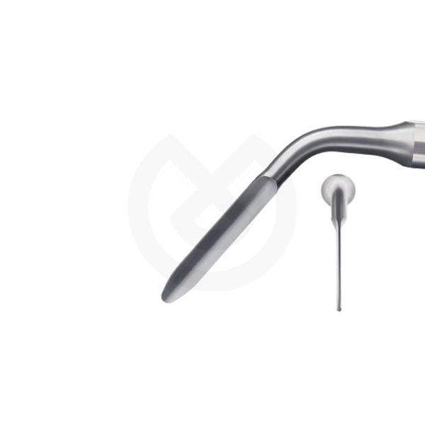 Particularmente fino que permite acceder a los espacios reducidos entre la encía y el hueso alveolar.