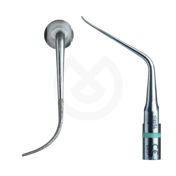 Microsonda diamantada recomendada para el tratamiento de furcaciones y espacios estrechos.