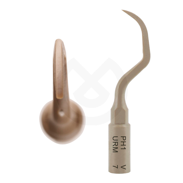 Microinserto plástico con forma de cureta universal para el tratamiento de los grupos incisivos/caninos. • Eliminación del biofilm y de los depósitos poco adherentes sin rallar las superficies prostésicas. • Pulido de las bolsas de dientes naturales.