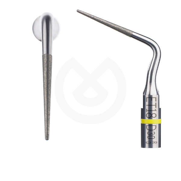 El inserto ET18D es una punta diamantada para: • Finalizar la cavidad de acceso. • Eliminar protuberancias de dentina, calcificaciones y materiales de relleno.