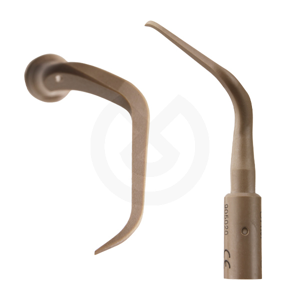 Microinserto plástico con forma de cureta 13-14 para la extracción de biofilm y depósitos poco adherentes para el tratamiento de los bloques posteriores. • Mantenimiento de roscas y límites del implante. • Detartraje de prótesis.