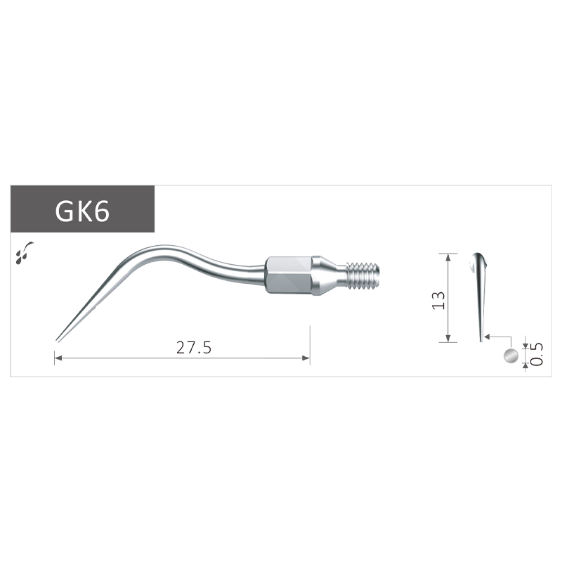 Una punta larga y recta con superficies redondeadas, la k#60 se utiliza para la limpieza suave de las bolsas durante el tratamiento periodontal. Es una limpieza efectiva en bolsas de hasta 9 mm de profundidad. Se utiliza en la región anterior, en superficies lisas.