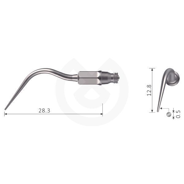 Punta mínimamente invasiva ideal para la eliminación de cálculos en bolsas profundas en todos los cuadrantes.
