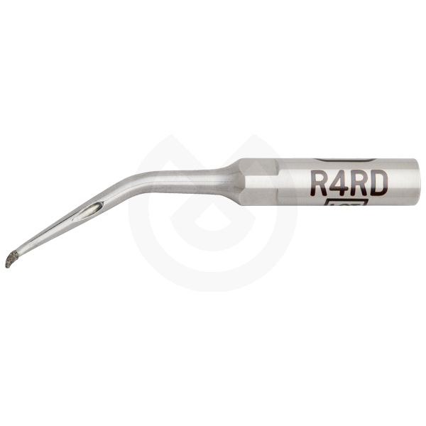 Inserto diamantado fuertemente curvado hacia la derecha para la preparación retrógrada del canal radicular.