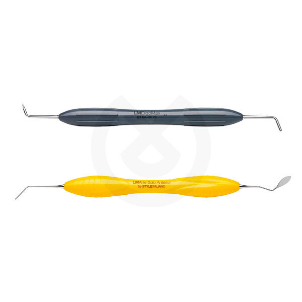 LM-Arte Solo Anterior: es un instrumento para colocación directa de carillas y reparación de composite anteriores. Las espátulas redondeadas y rectas están diseñadas para el moldeado de dientes anteriores, especialmente para superficies labiales.