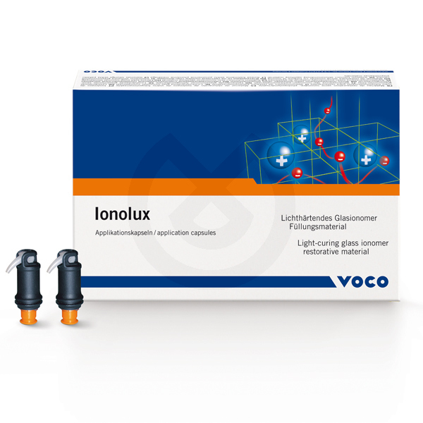 Material de restauración de ionómero de vidrio fotopolimerizable en colores A1, A2, A3, A3,5, B1 que une las ventajas de un ionómero y un composite. Ionolux es de rápida aplicación y de muy buena manipulación sin que se adhiera al instrumento, se adapta de forma excelente a las paredes cavitarias. No es necesario el uso de un acondicionador dentinario antes de su aplicación, tampoco precisa barniz posterior. Tiempo de polimerización de 20 segundos por capa de 2 mm.