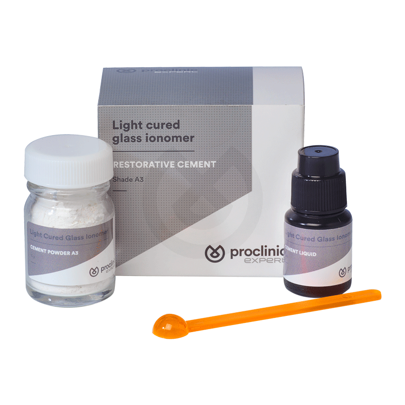 Ionómero de vidrio restaurador modificado con resina, de fraguado dual, fotopolimerizable y autopolimerizable, para asegurar la máxima resistencia inicial y un fraguado controlado y correcto. Libre de HEMA. Alta resistencia a la flexión y a la compresión para asegurar restauraciones duraderas. Fácil mezcla y textura suave. Radiopaco. Color A3. Indicaciones - Restauraciones en dientes primarios - Clases III y V y pequeñas clases I y II de una sola cara y sin carga oclusal en dientes permanentes - Técnica de sándwich - Odontología mínimamente invasiva
