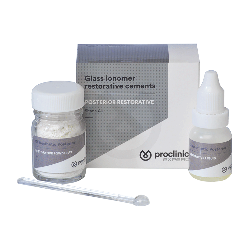 Ionómero de vidrio restaurador de autocurado ideal para restaurar dientes posteriores. Excelente translucidez y apariencia similar al diente natural, obteniendo resultados excelentes a nivel visual. Consistencia fácil de trabajar y condensar, alta resistencia a la compresión. Alta liberación de fluoruro y baja solubilidad para asegurar una restauración duradera. Adhesión química a la estructura dental, por lo que no necesita ni ácido grabador ni adhesivo. Color A3. Indicaciones - Tratamientos mínimamente invasivos - Restauraciones en dentición temporal y gerodontología: clases I, II, III y V - Clases I y II pequeñas en una sola superficie dental y sin carga oclusal en dientes permanentes - Sellado de fosas y fisuras - Como base