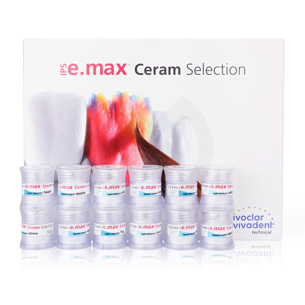 Contenido: 1-Guía de aplicación ilustrada, 3 x Reflector de luz IPS e.max Ceram 5g (salmón, crema y seda), 3 x IPS e.max Ceram Light Absorber 5g (Niebla, lavanda y taupe), 6 x Esmalte especial IPS e.max Ceram 5g (Agua, citrino, miel, albaricoque, cuarzo y diamante)