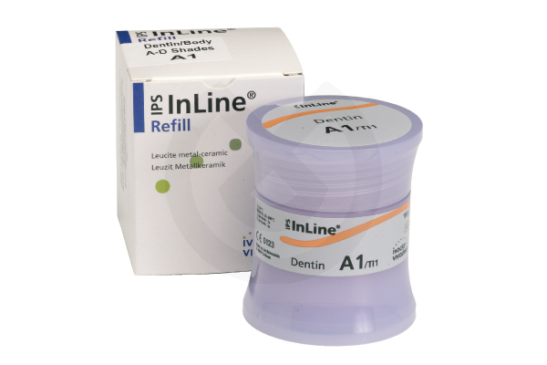 La cerámica sobre metal IPS InLine convencional para aleaciones en el intervalo de CTE de 13,8-15,0 x 10-6 K-1 (25-500 °C) se caracteriza por un procesamiento fácil y una estabilidad cromática y de cocción ideal.