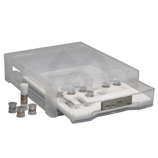 IPS Ivocolor Shade Dentin completas (SD0-SD8), IPS Shade Incisal completo (SI1-SI3), IPS Ivocolor Glaze pasta 9g y pasta fluo 9g, IPS Mixing liquido allround 15ml y longlife 15ml, IPS Guía Shade.