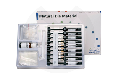 9x IPS natural die material (ND1-ND9) de 8 g 1x separador de 20 ml 8x holders/espigas de muñones 8x condensers (rellenadores) 2x universal holders 1x guía de colores.