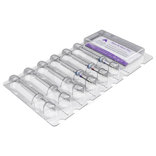 Instrumentos rotatorios de NiTi para el tratamiento endodóntico. iRace es un sistema rápido, efectivo y seguro. Tan sólo tres instrumentos rotatorios iRace son necesarios para tratar la mayoría de casos (canales rectos, ligeramente curvados o anchos). La secuencia iRace permite conformaciones de canal de hasta una ISO 30/.04. Gracias a su facilidad de uso permite ahorrar tiempo de tratamiento. Compuesto por 3 instrumentos: R1 15/.06, R2 25/.04 y R3 30/.04.