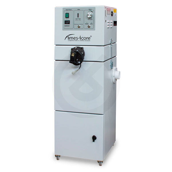 iVAC PRO +: Sistema de aspiración industrial con motor sin escobillas, caudal volumétrico de 280m³ / h, potencia ajustable, sistema de filtrado con cartucho de filtro de teflón y cajón de polvo grande, función de autolimpieza automática para aire comprimido, apto para todas las fresadoras dentales imes-icore.