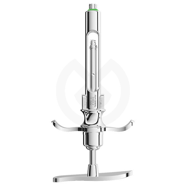 Jeringa plegable de un gancho, rosca métrica y aspiración manual. Para carpules de anestesia de 1,8 ml.