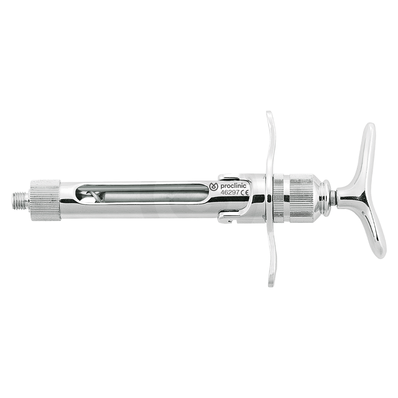 Jeringa plegable con sistema de doble gancho para la aspiración manual.