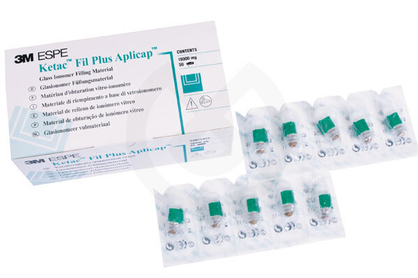 Material de obturación de ionómero de vidrio Ketac™ Fil Plus con sistema Aplicap, que permite un manejo sencillo, propiedades de trabajo constantes y una calidad fiable. Es necesario el uso de un activador de cápsulas Aplicap (ref. 71778) y de un dispensador de cápsulas Aplicap (ref. 71779).