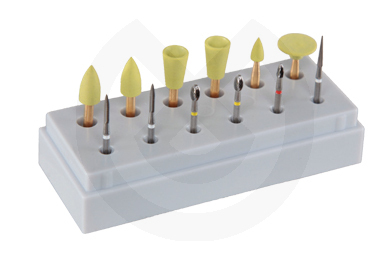 6 pulidores amarillos (2x punta grande, 2x copa grande, 1x punta pequeña, 1 x disco) + 6 fresas de tungsteno de acabado (2x TC48LUF.314.012, 2x TC379F.314.023, TC390.314.018, TC135UF.314.014)