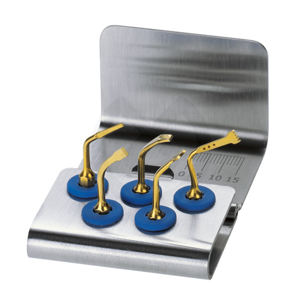 Mectron ofrece kits de insertos adecuados para PIEZOSURGERY®, proporcionando todos los insertos necesarios para las diversas indicaciones. Las bandejas de acero inoxidable permiten una esterilización eficaz y un almacenaje adecuado.