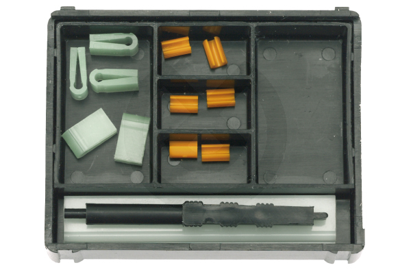 El sistema BAR-CONNECTOR está formado por una barra en plástico calcinable sin residuos, un elemento preparatorio mantenedor de espacio. Una parte hembra en plástico de máxima precisión y de elasticidad prolongada y una llave de inserción. Está indicado para sobredentaduras.